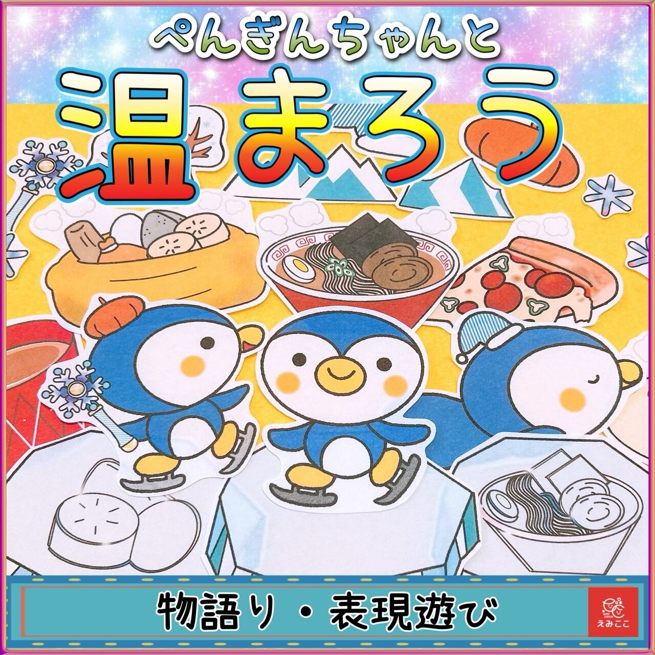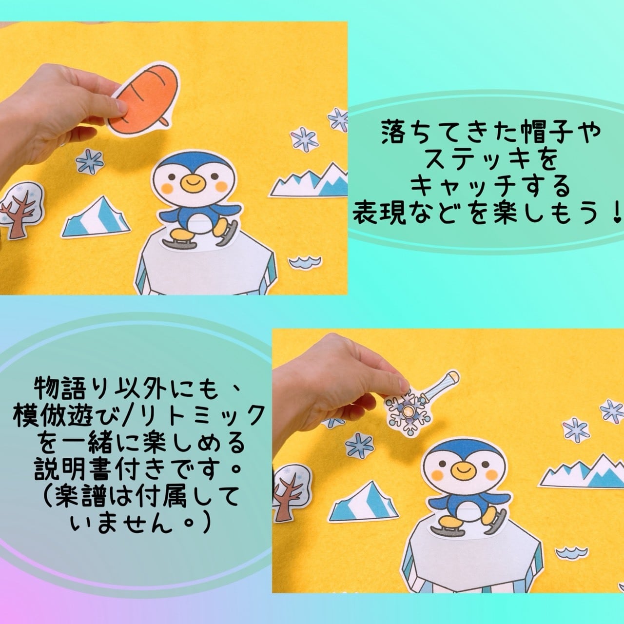 模倣遊び・リトミックに使える!パネルシアター【ぺんぎんちゃんと温まろう】歌遊び 表現遊び 見立て遊び 保育園・幼稚園向け 乳児 幼児 冬におススメのお話
