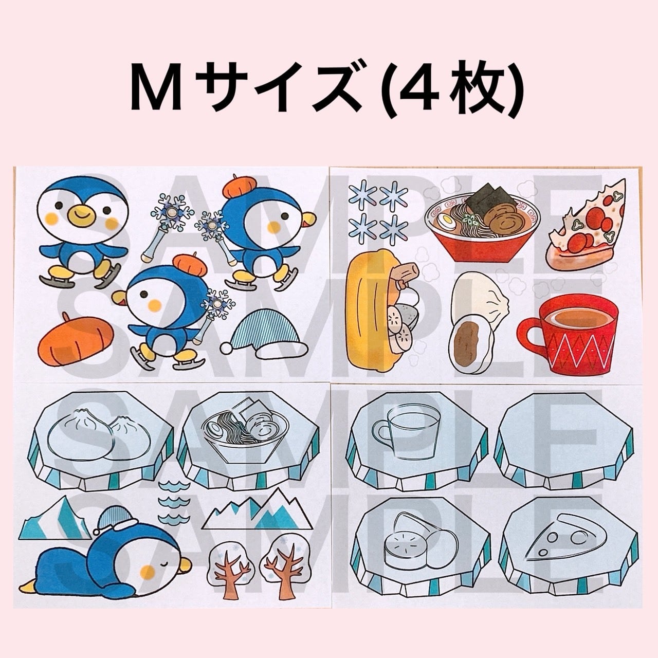 標準サイズ(M)がA4サイズのPペーパー4枚、サイズUP(L)が7枚、もっとサイズUP(LL)が12枚です。各サイズの大きさは掲載画像よりご確認下さい。