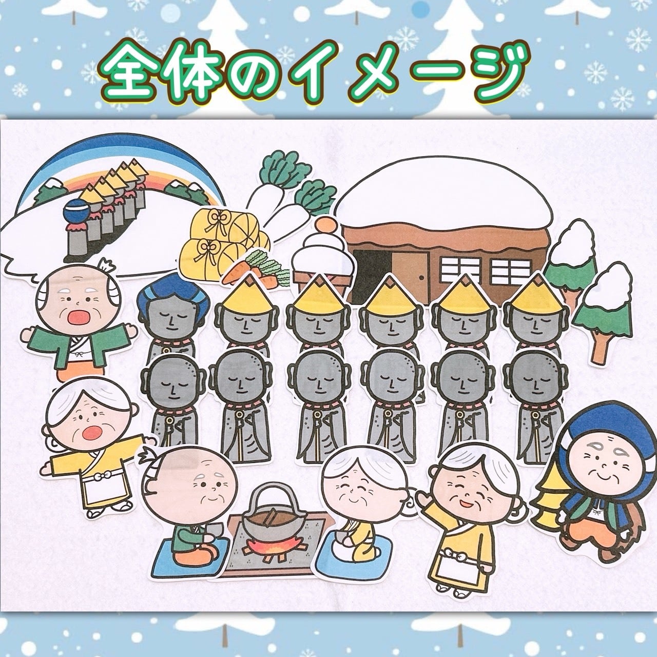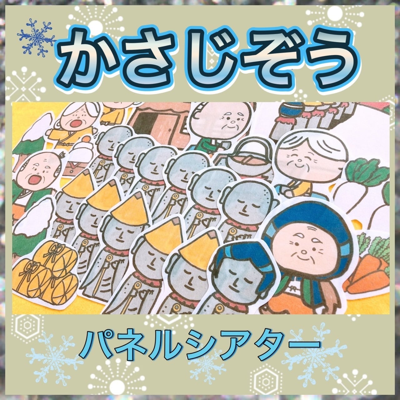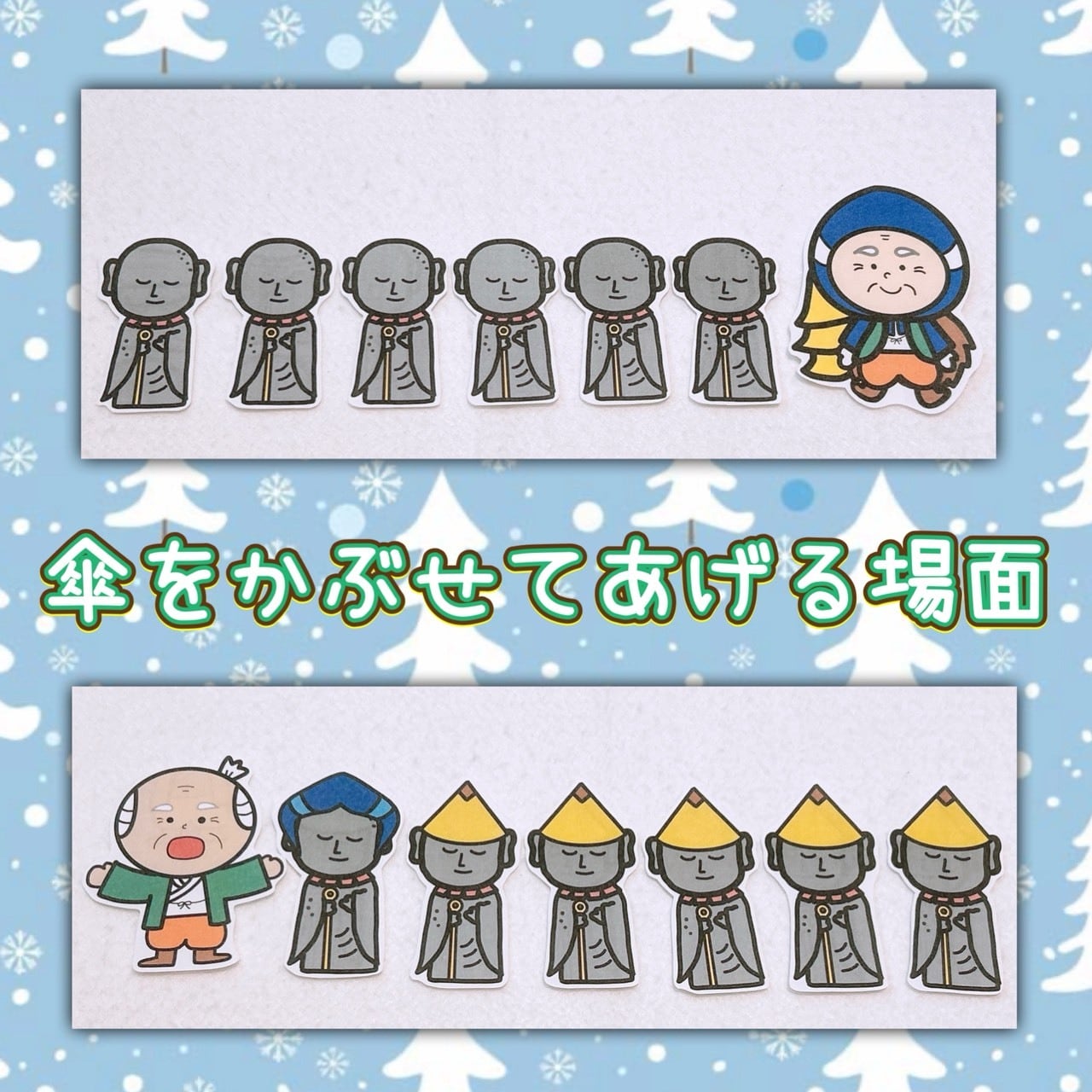 かさじぞう かさ地蔵 傘地蔵 昔話 童話 絵本 導入 幼稚園 保育園 保育士 先生 保育教材 知育 模倣遊び あそび オリジナル作品 2歳児 3歳児 4歳児 5歳児 パネルシアター 絵本 紙芝居 手遊び ハンドメイド