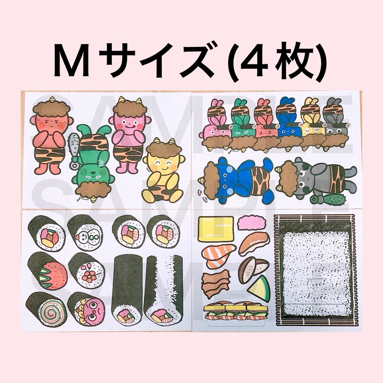 標準サイズ(M)がA4サイズのPペーパー4枚、サイズUP(L)が7枚、もっとサイズUP(LL)が11枚です。各サイズの大きさは掲載画像よりご確認下さい。
