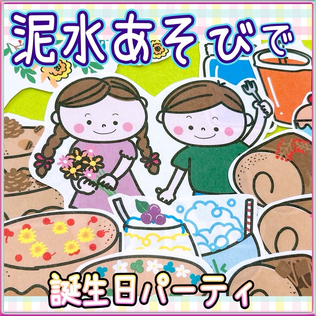 泥あそび 水あそび 泡あそび 夏 ケーキ 誕生日 ジュース かき氷 プリン 食育 誕生日パネルシアター 外遊び 保育教材 乳幼児 夏パネルシアター たんじょう日パネルシアター お祝い