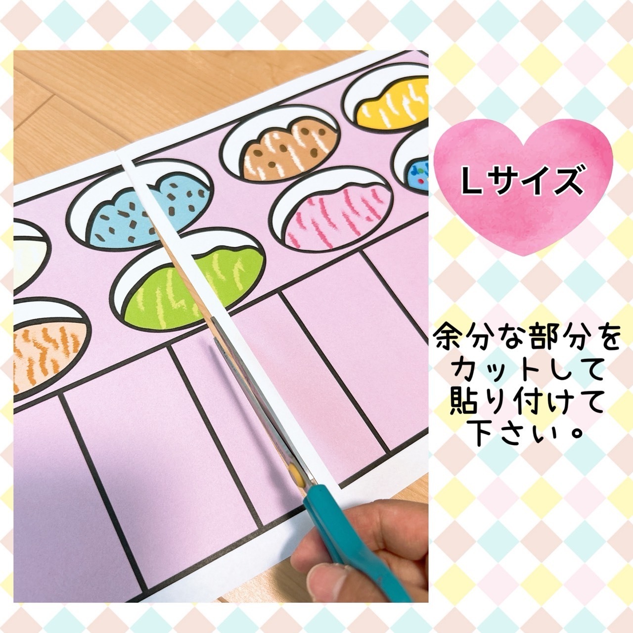 標準サイズ(M)がA4サイズのPペーパー4枚、サイズUP(L)が10枚です。(Lサイズの完成品は、カット済みのみの料金となります。発送時の折曲がりを防ぐため、アイスクリームの台の、のり付けは各自お願いしております。よろしくお願い致します。)